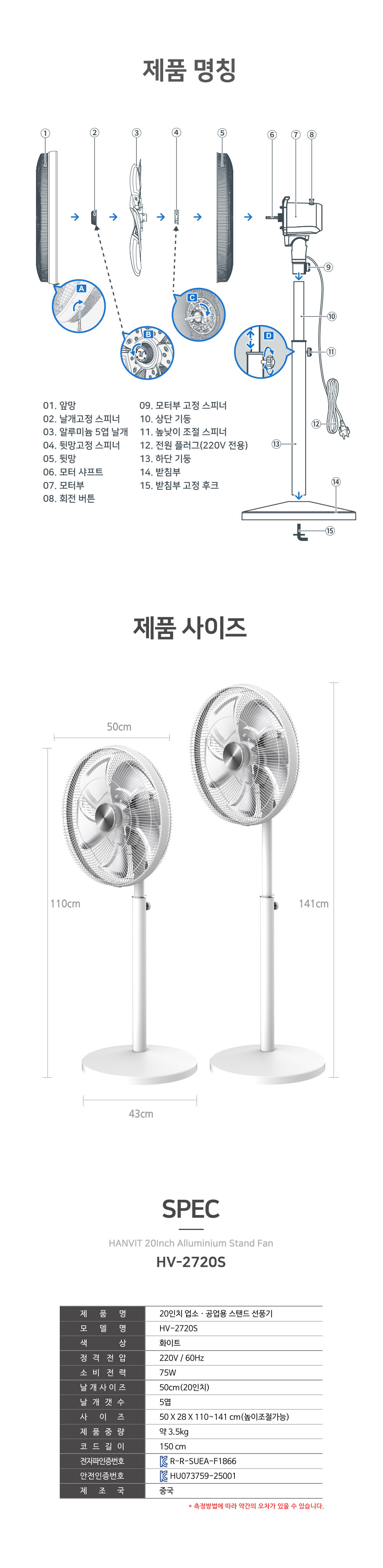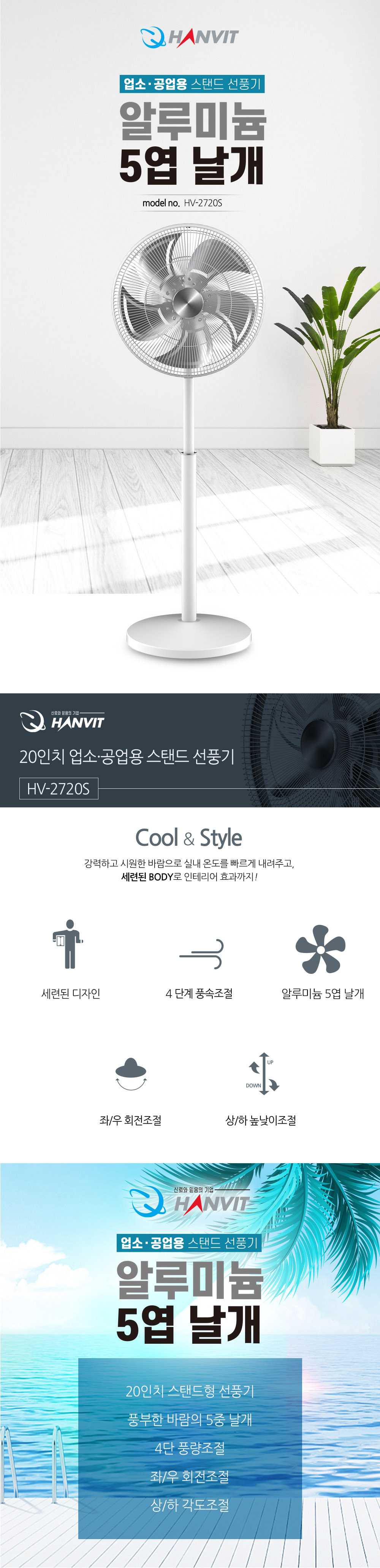 한빛 20인치 업소 공업용 20인치 알루미늄 5엽날개 스탠드 선풍기